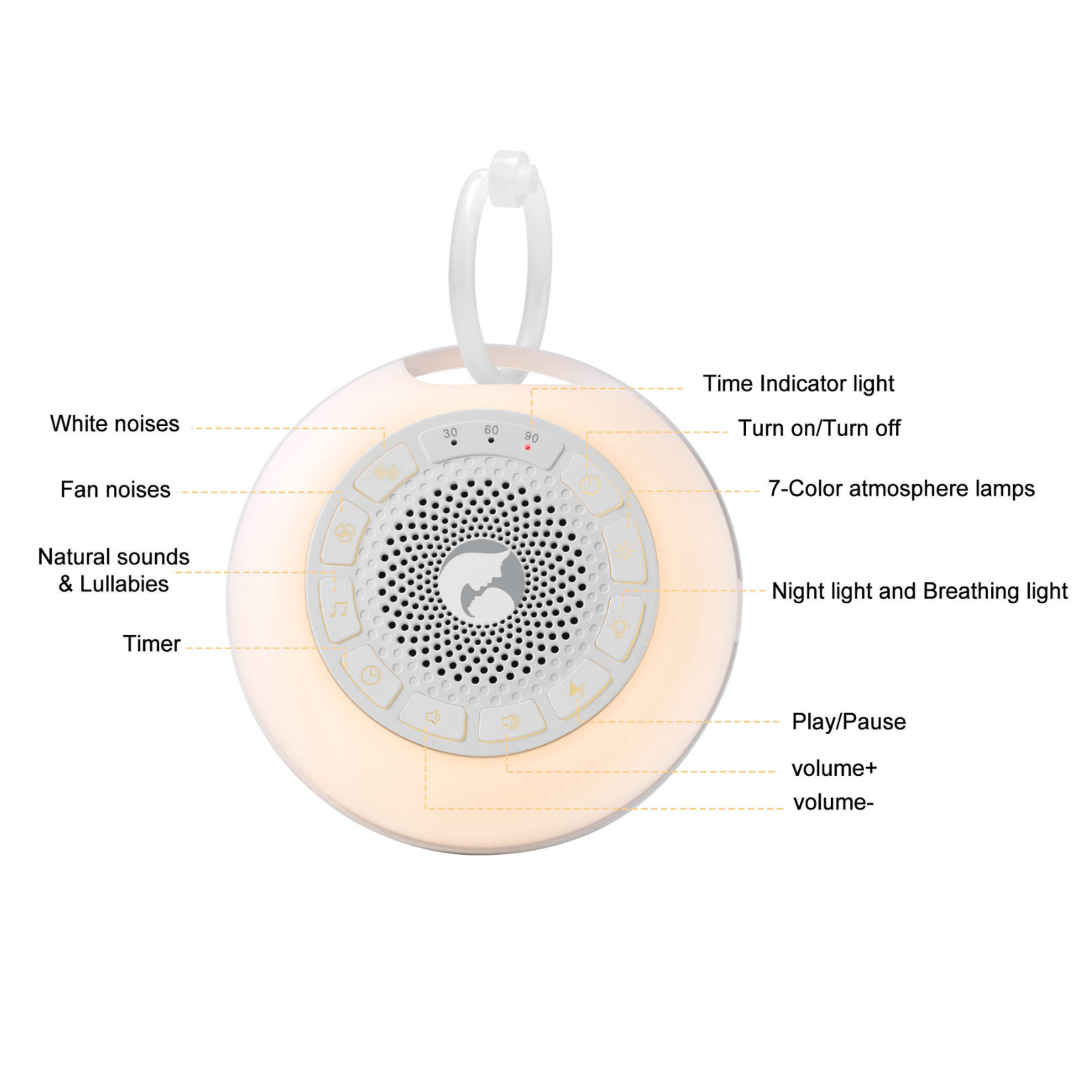 Elevate your baby’s sleep with our compact sound and light companion!